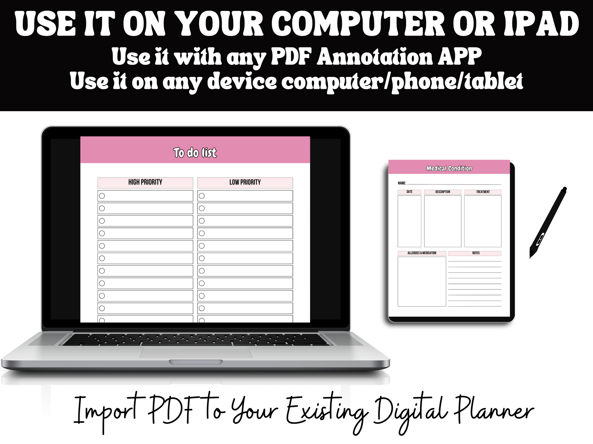 Carry your planner with you wherever you go, right in the palm of your hand. Our digital planners are compatible with various devices, ensuring you can boost your productivity and stay organized whether you're at home, in the office, or on the go.
